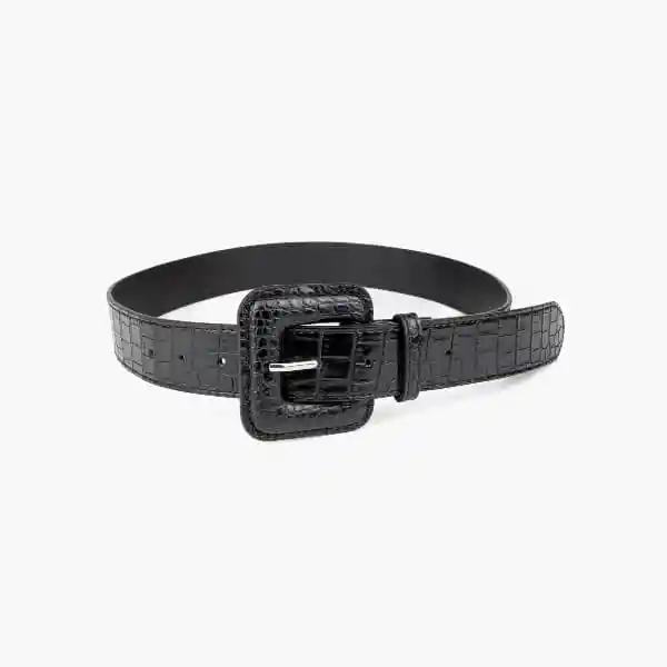 Cinturón estilo croco con hebilla grande. Cuenta con 8 agujeros para ajustar el cinturón.