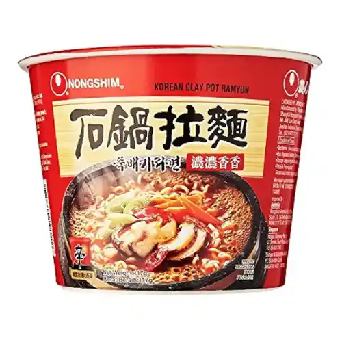 FIDEOS INSTANTANEOS EN CALDO DE VACUNO MEDIO PICANTE PREPARADOS EN OLLA DE PIEDRA TRADICIONAL COREANA