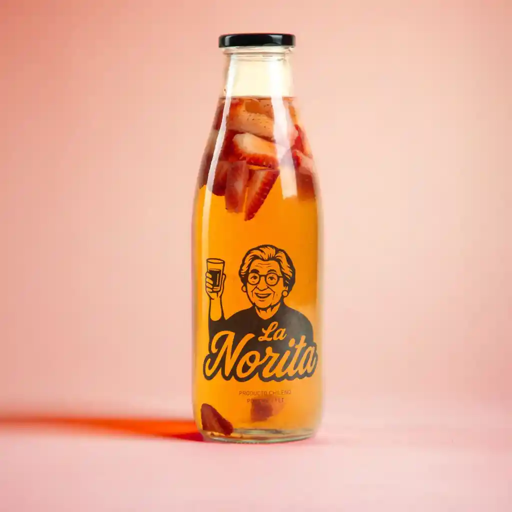 Vino blanco con frutillas, hecho con el método de la Norita. Formato 1LT. Listo para consumir.