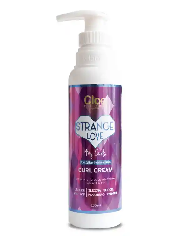 STRANGE LOVE, Tratamiento portable (sin enjuague) y definidor de rizos, ideal para cabellos ondulados, crespos y rizados. Gracias a su exclusiva fórmula con XYLICURL posee un efecto reparador e hidratante de la fibra capilar, el cual otorga un brillo instantáneo, flexibilidad, suavidad, luminosidad y definición del rizo de forma inmediata. Enriquecido con aceite de Macadamia, el cual provee ácidos grasos saturados e insaturados que nutren desde el córtex hasta el exterior del cabello, devolviendo vitalidad y luminosidad. Su exclusiva fórmula no posee siliconas e incluye un agente suavizante natural del cabello que no deja residuo, aumentando la suavidad y otorgando mayor aplicabilidad del producto en el cabello.