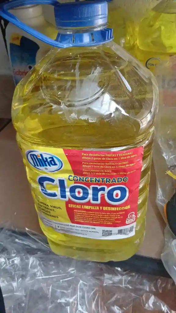 Cloro concentrado bidón de 5lt elimina virus, bacterias, hongos y gérmenes.