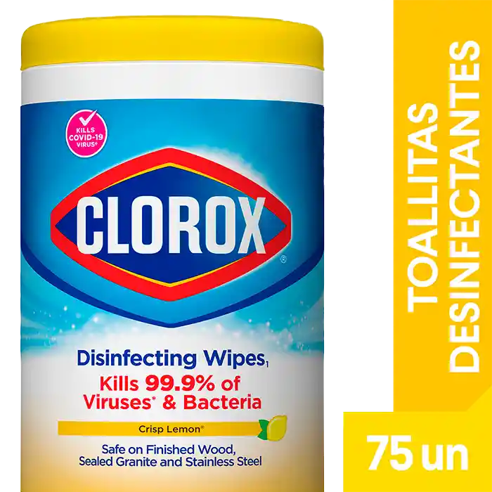 Las toallitas desinfectantes Clorox limón, son de triple capa para limpiar, desinfectar y eliminar alérgenos para un poder de limpieza 5 veces y dejar un aroma fresco de limón crujiente. Son seguras de usar en madera acabada, granito sellado y acero inoxidable. packing: Bolsa