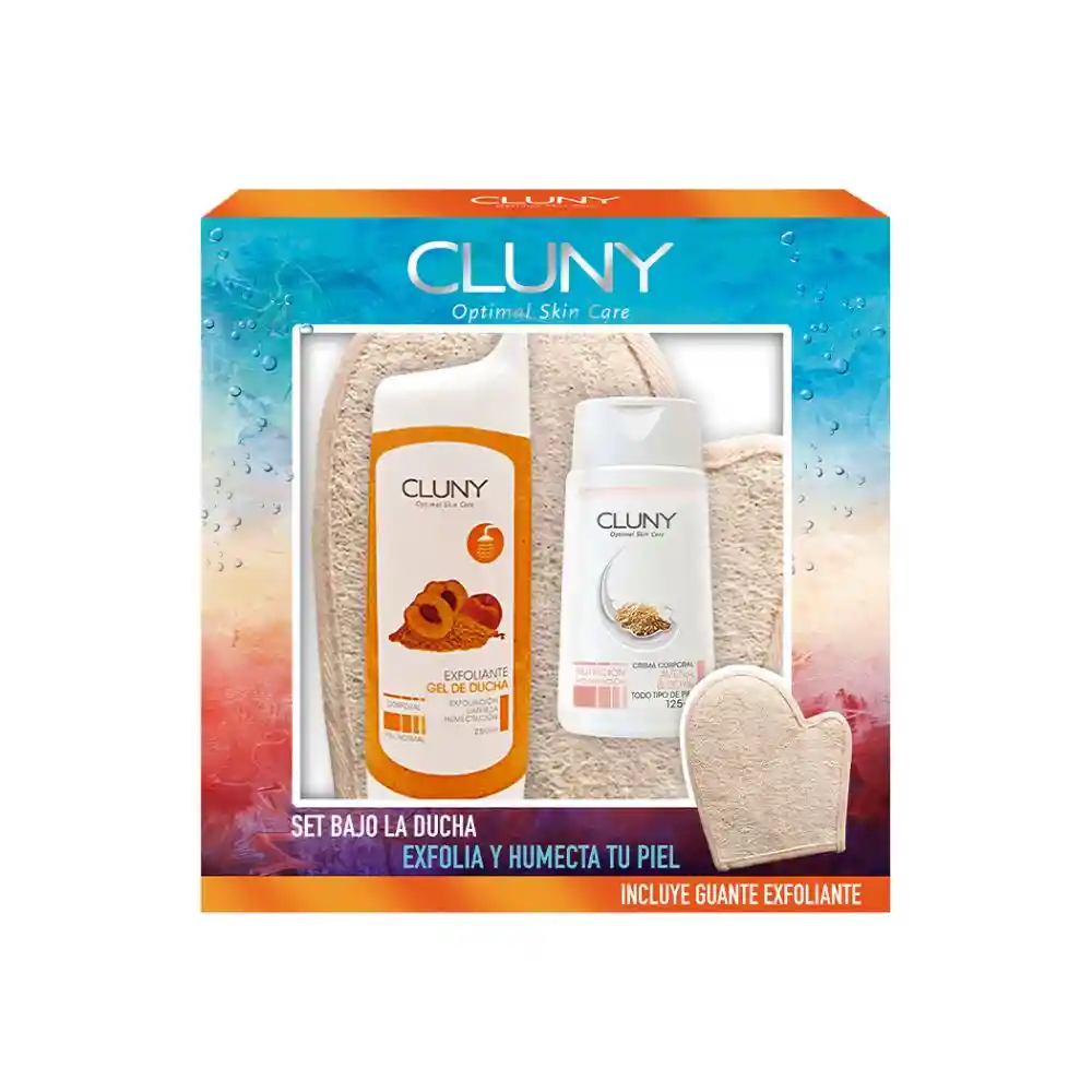 Set corporal que contiene gel de ducha exfoliante y crema corporal que humecta la piel. Incluye guante exfoliante. packing: Caja