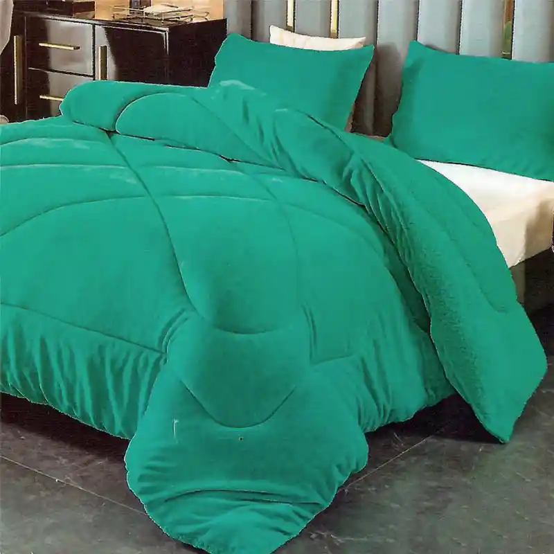 Cobertor Plumón 2 Plazas con chiporro plush El tejido de la ropa de cama normalmente está compuesto de algodón, de poliéster o una mezcla de ambos. El algodón es una fibra natural de mejor calidad que el poliéster (fibra sintética) ya que es transpirable y no causa alergias en la piel. Material : PLUSH Por la parte de arriba y chiporro por la parte de abajo Medidas del cobertor: 200x270 cm Incluye Una bolsa de resguardo Cubrecama de Invierno 2 Fundas para las almohadas