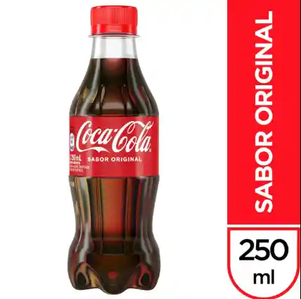 La Coca-Cola Sabor Original de 250 ml es una presentación popular disponible principalmente en botellas plásticas. Se caracteriza por ofrecer la receta clásica en una porción individual controlada, aportando aproximadamente 105 calorías por envase.
