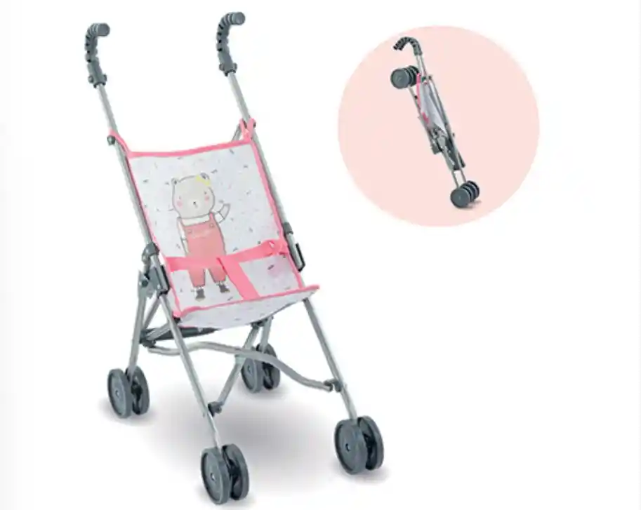 ¡Este cochecito parece un cochecito real! ¡El cochecito Rosa es ideal para pasear a tu bebé grande de 36 a 52 cm! Sientas a tu bebé en el cochecito, una pierna a cada lado del cinturón y lo sujetas: ¡listo, vamos! Ligero y plegable, es fácil de transportar y no ocupa espacio cuando llega el momento de guardarlo. Cuando necesita plegarse, hay dos puntos de cierre para proteger los deditos de los niños y que no se pellizquen. Los muñecos grandes tienen una variada colección de ropa y accesorios en la gama Mon Grand Poupon Corolle para jugar y actuar como adultos. A partir de los 3 años.