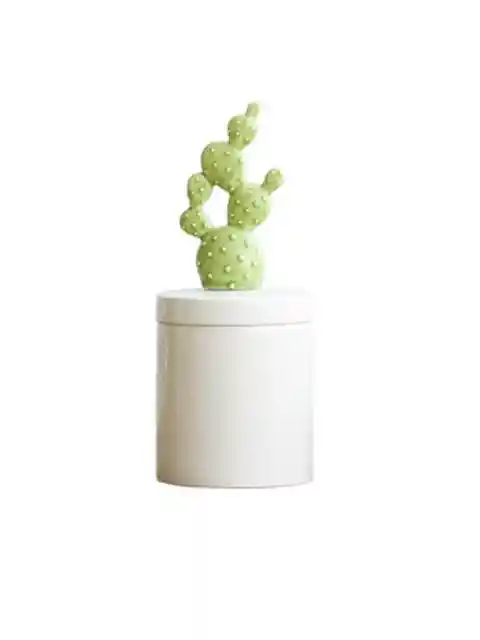 Este cofre de cerámica está coronado con un alegre cactus y es ideal para guardar u organizar lo que quieras. Tiene una altura de 22,5 centímetros y su color crema tiene un acabado lustroso.