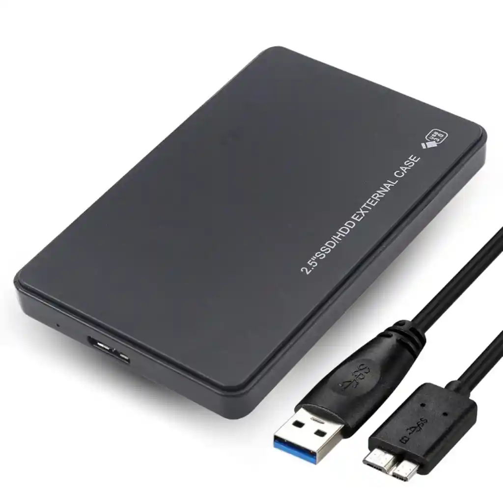 Compatible con disco duro SATA I de 7 mm a 9,5 mm, SATA II o disco de estado sólido Material: Plástico Compatible con cualquier USB 3.0 o USB 2.0 Host de cualquier Windows, Macintosh, Linux o Unix Desktop o Laptop Compatible con enchufar y usar, alimentado por USB, no necesita reinicio ni adaptador de alimentación o controlador adicional. Carcasa para disco duro externo de 2,5 pulgadas con adaptador de corriente para disco duro HDD SSD SATA, color negro La carcasa de disco duro de 2,5 pulgadas puede soportar cualquier HDD/SSD de 7 y 9,5 mm de 2,5 pulgadas hasta 2 TB. Funciona bajo muchos sistemas operativos como Windows XP/Vista/7/8 y Mac9.1/10.2 o superior. USB autoalimentado que no requiere reinicio ni adaptador de corriente o controlador adicional. Diseñado con diseño sin herramientas, por lo que no se necesitan herramientas para instalar HDD y SSD. Está equipado con indicadores LED especiales que muestran el estado del disco duro y el proceso en curso. No necesita controladores, fácil de usar. Sin necesidad de herramientas o tornillos, puedes convertir fácilmente tu disco duro en un disco duro portátil bien protegido en cuestión de segundos. Equipado con tecnología universal plug and play que permite una fácil instalación y desmontaje. Sin herramientas, no necesita reinicio o controlador adicional. Compatible con la mayoría de los principales sistemas operativos, compatible con Windows 10/8/7, Vista 7/8, XP, Linux, Mac OS 9.1/10.2 o superior. Super Speed: La interfaz SATA de la caja sd soporta protocolo de transmisión acelerada UASP, 70% más rápido que el USB 3.0 tradicional. La interfaz USB 3.0 A soporta una velocidad de hasta 5 Gbps, compatible con puertos USB 2.0 y USB 1.1. Contenido de la caja: 1 caja de disco duro 1 cable USB 3.0 1 funda case