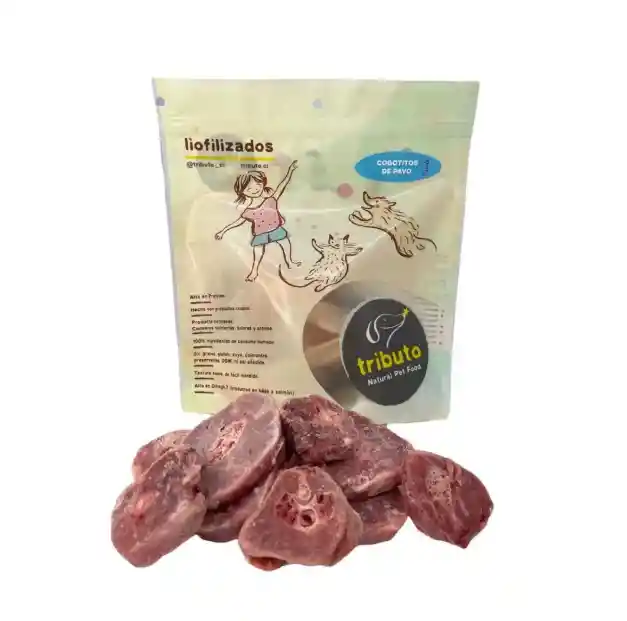 Cogotitos de pavo liofilizados No contiene Granos, Gluten, Preservantes ni Colorantes Artificiales. Lo puedes ofrecer como premio, para entrenar o enriquecer su alimentación diaria. El envase contiene 100 grs.