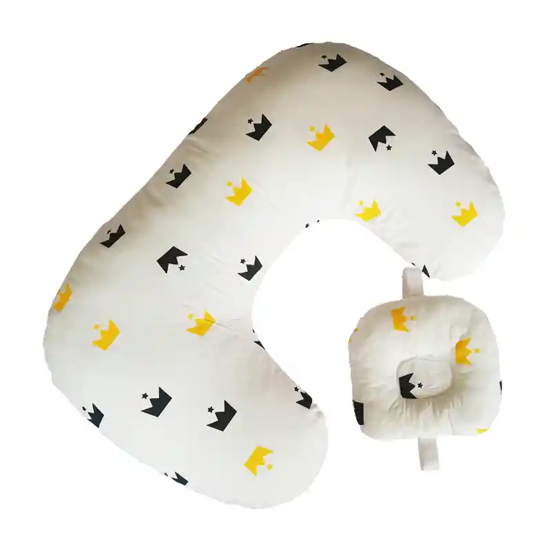 Material: Poliester + Algodón. Medida Cojin de Lactancia: 56 x 37 cm aprox. Medida Cojín de cabeza bebe: 20 x 17 cm aprox. Forma: U Diseño: Coronas Contiene: 1 Cojín de Lactancia + 1 Cojín de cabeza para bebe + Bolsa de Almacenamiento Se puede utilizar como almohada para aliviar la presión de las piernas durante el embarazo. Almohada ergonómica que asegura una posición erguida durante la lactancia. Muy útil cuando los bebés están aprendiendo a sentarse. Tiene la consistencia y altura ideal para la comodidad de la madre y el bebé