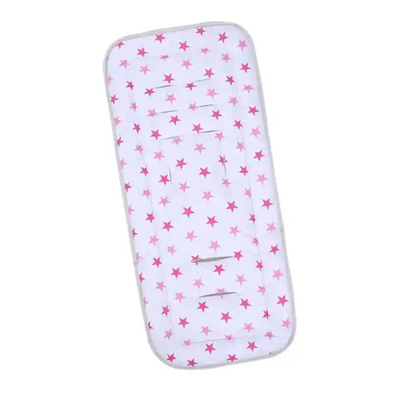 Especificaciones: . Material: Algodón + Seda de Pluma . Medida: 33 cm x 75 cm (Aprox) . Diseño: Estrellas Rosa . Contiene: 01 Cojín para Cochecito (No Incluye Accesorios) . El cojín exterior del asiento del cochecito está hecho de tela de algodón . Súper suave, cómodo, liviano y transpirable y los hace sentir cómodos. . El asiento es universal para la mayoría de los cochecitos, sillas de paseo, asientos para el automóvil, asientos de seguridad para bebés y otros asientos. . Su diseño es ajustable tiene 9 ranuras para correas lo hace compatible y evita que el forro del asiento se deslice hacia abajo. . Corte la longitud de los orificios de las ranuras según sea necesario. . El ideal para regalo con diseños estampados de dibujos animados que tendrá entretenido a los bebés.