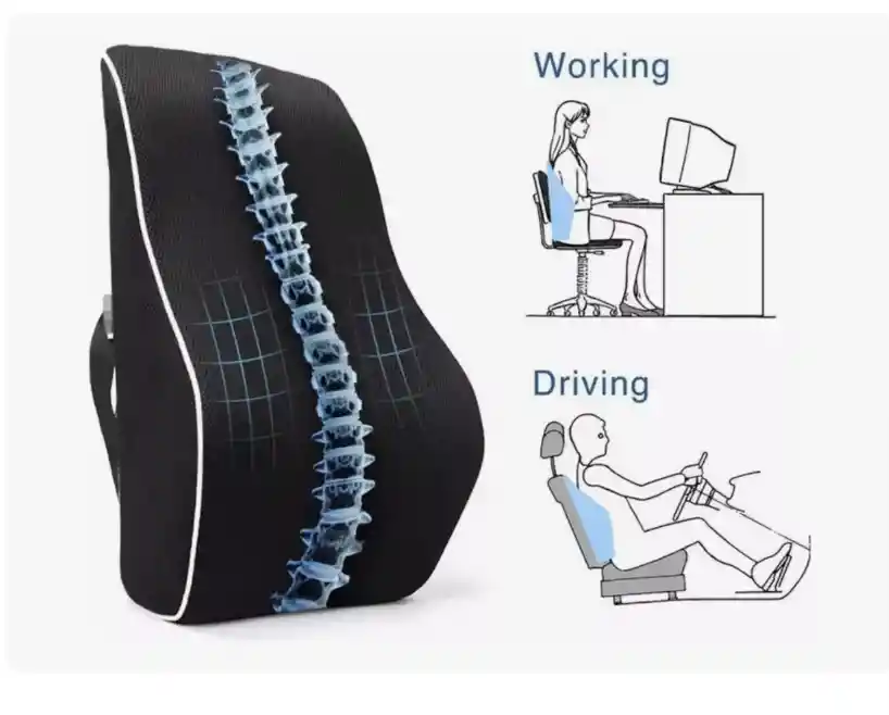 Apoya suavemente la espalda en él y notarás cómo se ajusta a tus lumbares y mejora tu postura al sentarte, apoyando de manera óptima la columna vertebral. * El cojín lumbar ayuda a aliviar el dolor causado por posturas inadecuadas. * Una banda elástica ajustable asegura el cojín firmemente en cualquier asiento. * Es compacto, ligero y fácil de transportar, pudiendo ser utilizado tanto en el hogar como en el vehículo. RESUMEN TÉCNICO: * Dimensiones: 35 x 35 x 12 cm. * Peso: 0.500 KG. * Banda elástica ajustable para asegurar en su lugar en todos los asientos.