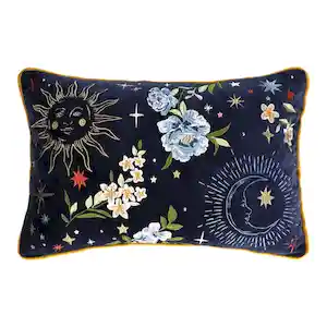 Con Funda de Lona Algodón Con Diseño Bordado y Relleno de Poliéster. Tiene un Tamaño de 60 x 40 cm.