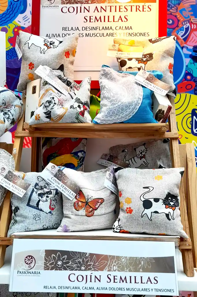 {"richText":[{"text":"RELAJANTE, DESINFLAMA, CALMA, ALIVIA DOLORES, MUSCULARES, TENSIONES. "},{"font":{"bold":true,"size":11,"color":{"argb":"FF495057"},"name":"Arial","family":2},"text":"Uso calor:"},{"font":{"size":11,"color":{"argb":"FF495057"},"name":"Arial","family":2},"text":" Rociar el cojín con agua fría antes de colocarlo al calor para evitar el resecamiento de su contenido. En microondas 1 a 3 min. app y colocar en la zona afectada. "},{"font":{"bold":true,"size":11,"color":{"argb":"FF495057"},"name":"Arial","family":2},"text":"Uso frío: "},{"font":{"size":11,"color":{"argb":"FF495057"},"name":"Arial","family":2},"text":"Coloque el cojín en una bolsa cerrada en el congelador unos minutos, luego aplicar en la zona afectada. Contiene una mezcla perfecta de semillas y hierbas. Recomendado para la mayoría de los dolores que sufrimos habitualmente, como lumbago, ciática, contracturas, stress, artritis, artrosis, dolores menstruales, y toda dolencia que requiera calor o frío local.Guardar el cojín en su caja para mantener sus propiedades. Usando el cojín todos los días tiene una duración de entre 6 a 8 meses PRESENTACIÓN: Cojín 15X15cms. de 300grs., en caja de cartón sellada."}]}
