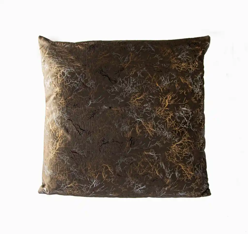 Cojín De Terciopelo Diseño Raices Planta De Colores Café
