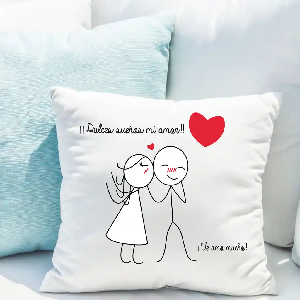 Cojín palito - Dulces sueños mi amor Ficha del producto: Medidas 35x35, Material Bistrech blanco para el diseño y de color rojo para la parte posterior, relleno soft sintético, cojín decorativo.