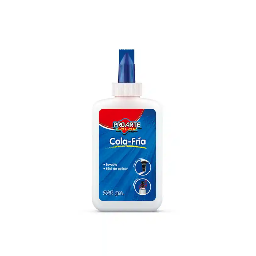 Adhesivo blanco tipo cola fría de 225 g, ideal para pegar papel, cartón y materiales ligeros en manualidades y trabajos escolares. Fácil aplicación y excelente rendimiento para todo tipo de proyectos.