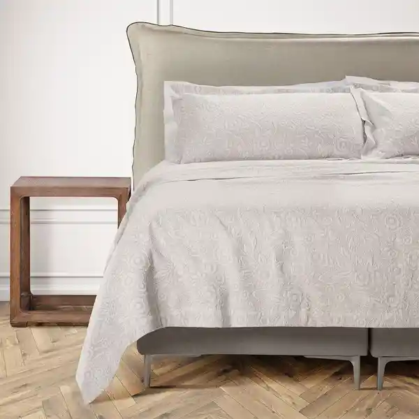 La Colcha Rosen Timeless Floral Ecru Está Fabricada 100% en Algodón lo Que le Confiere un Alto Grado de Suavidad. Se Presenta en Tonos Beige y Con Texturas de Inspiración Floral. Está Fabricada en Portugal y Cuenta Con Certificación Oeko Tek.