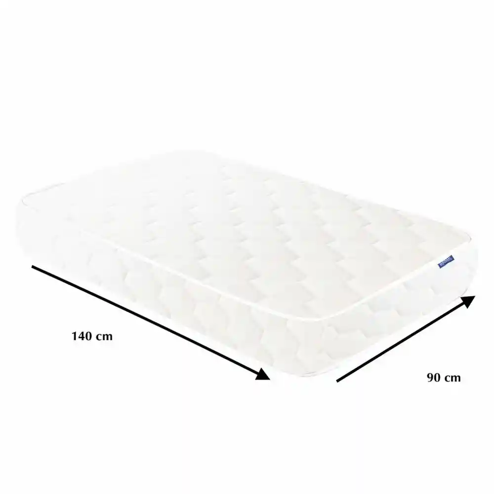 colchon 140x90 x13 Relleno Confeccionado con Poliuretano flexible de espuma compensada compacta y homogénea Soporte Marco de poliuretano D-18 indeformable de alta densidad que entrega mayor estabilidad a la estructura y te asegura mayor duración Alto:13 cm Uso: Dormitorio Tela de algodon Medidas 140x90x13cm
