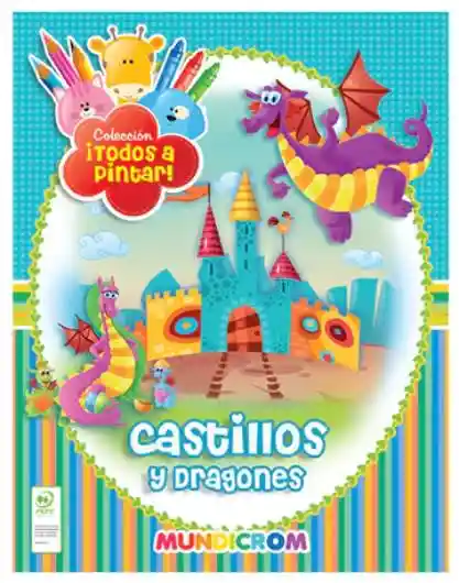 Colección Todos a pintar presenta Castillos y Dragones, es una colección que invita a los niños a divertirse coloreando simpáticos y divertidos dibujos que estimularan su creatividad e imaginación. Se recomienda de 3 años en adelante. ISBN: 9789567348657