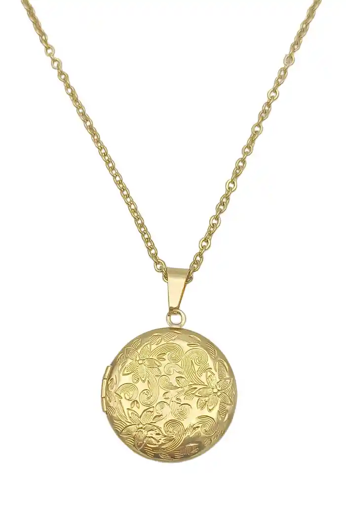 Hermoso colgante relicario chapado en oro 18k, con hermoso relieve en parte frontal de trama de flores vintage y completamente liso al reverso de este, pulido y brillante, ideal para grabar un mensaje o fecha especial (Nosotros no realizamos el grabado). Hermoso regalo para cualquier fecha especial o para auto regalar, ¿Por qué no? Material: Hipoalergénico, chapado en oro 18kl Largo de la cadena: Dorada 50 cm // Plateada 42 cm Tamaño Colgante: 32*32mm Peso aprox: 15 gr (Se envía con bella caja de regalo)