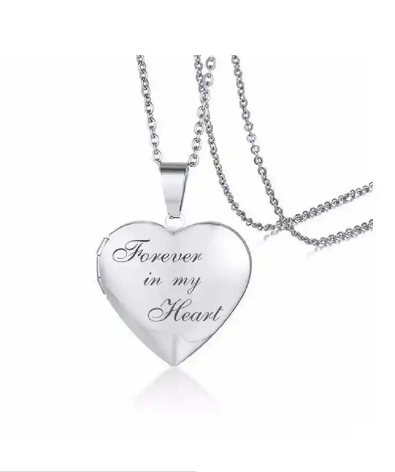 Forever in my heart: Material: Acero inoxidable hipoalergénico Colores: Plateado Tamaño Colgante: 29*27mm (Medidas externas) 23*20mm (Medidas internas, para la foto) Peso apróx: 15 gr (Se envía con bella caja de regalo)