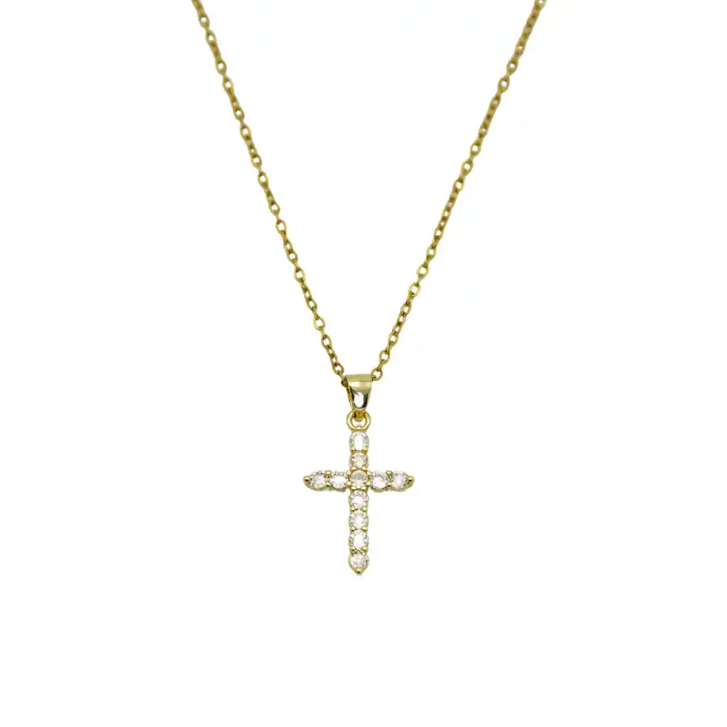 Hermoso colgante de Cruz elaborado con incrustaciones de zirconioscubicos AAA que son enmarcados en un brillante y resistente chapado en oro 18k. Hipoalergénico, ideal para pieles sensibles. Pensado tanto en las grandes como, para las chicas de la casa; pues es el accesorio ideal para las personas con mucha fe que quieren llevar consigo un símbolo de sus creencias o las pequeñas que serán bautizadas o estarán haciendo su primera comunión. Material: Chapada en oro 18k. Piedras: Zirconios cúbicos Longitud: 50 cm de largo Peso aprox 5 g aproximadamente Todos nuestros productos son enviados en bella presentación de regalo.