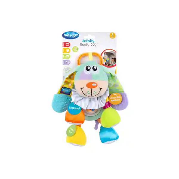 El Colgante Cuenta Con un Sonajero Pensado en Estimular Auditivamente a Los Bebés Durante Sus Primeros Meses de Vida Ayudándolos a Comenzar a Descubrir el Mundo Con Sus Sentidos!El Compañero Perfecto de Viaje Para tu Bebé? Sin Dudas el Colgante de Actividad Doofy Dog de Playgro!Este Entretenido y Estimulante Colgante Tiene un Divertido Diseño de Perro el Que lo Hace Mucho Más Atractivo Para Los Más Pequeños Quienes Ven en Este Amiguito un Compañero de Viajes o Descanso. El Colgante Cuenta Con un Sonajero Pensado en Estimular Auditivamente a Los Bebés Durante Sus Primeros Meses de Vida Ayudándolos a Comenzar a Descubrir el Mundo Con Sus Sentidos!Además es Ideal Para Desarrollar Las Habilidades Motoras y Coordinación Ojo Mano Por Medio de Sus Movimientos Agarre y Tiempo de Juego. Y Podrá Acompañar a tu Bebé Donde Sea Que Vaya! Pues Gracias a su Clip es Fácil y Rápido de Adherir al Coche Silla de Auto o Cuna de tu Pequeño Siendo su Fiel Amigo de Aventuras y Paseos. Este Colgante es Perfecto y Totalmente Recomendado Para Bebés Desde Los 3 Meses +. Características. El Clip se Adhiere Fácilmente a Coches y Sillas de Auto. Cuenta Con Sonajero Para Estimulación Auditiva. Ideal Para Desarrollar Habilidades Motoras y Coordinación Ojo Mano. Edad Recomendada: 3 Meses +.