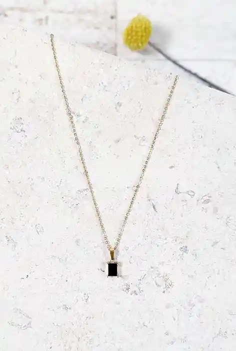 Colgante con circón negro profundo, firmemente engastado en grifa que destaca su intensidad y brillo. La estructura del colgante, con su valier en forma de V, añade una sofisticación moderna al diseño, convirtiéndolo en una pieza destacada para cualquier colección de joyas.