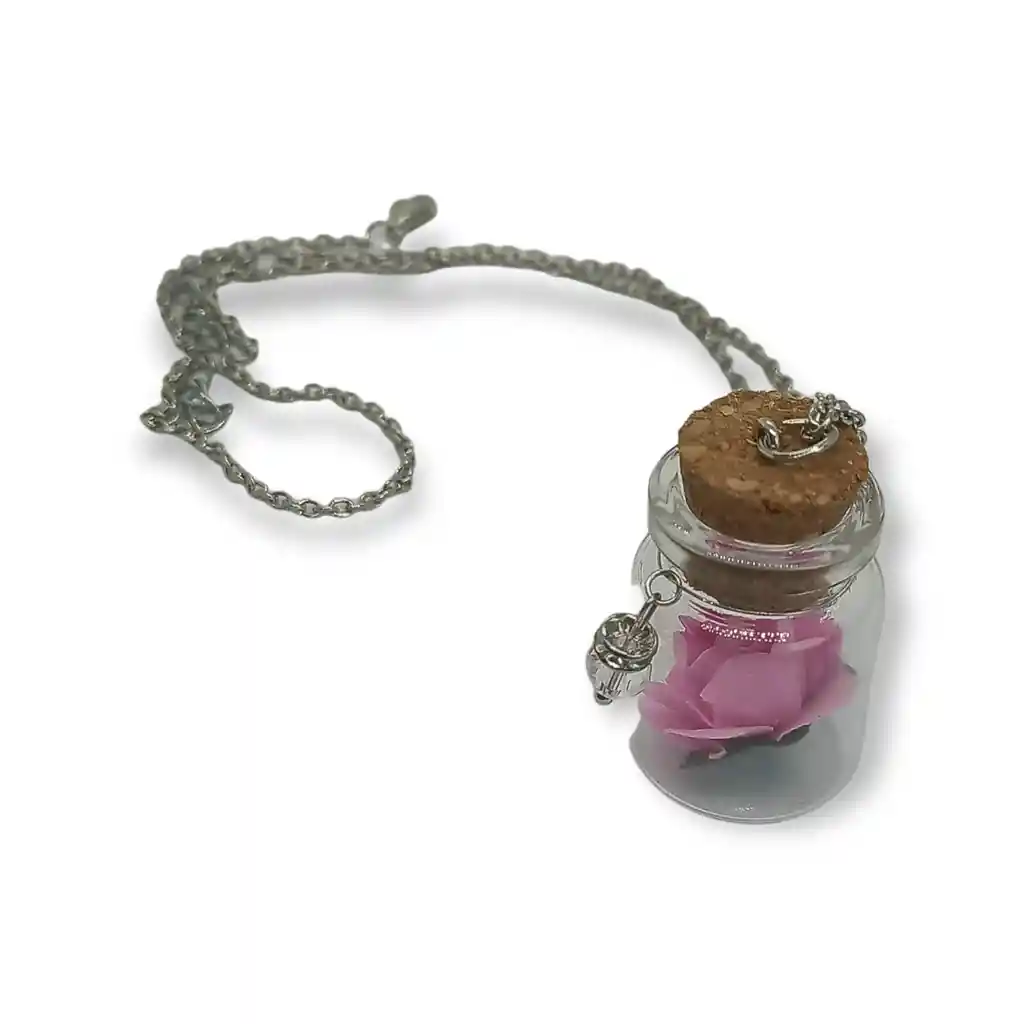 ¡Gracias por tu visita! ¡mas de 4 años de compromiso con nuestra clientela! ¿QUIERES ENVIARSELO A UN SER QUERIDO COMO REGALO? Nosotros nos dedicamos a que la presentación sea tan hermosa como la prenda que llevas. Lindo y curioso colgante con dije de cristal, dentro del mismo se encuentra una bella rosa de diferentes colores que al exponerla a una fuente de luz muestra un muy ligero brillo color azul. El colgante se entrega con el tapón de corcho un poco suelto para que los clientes decidan si agregar algo mas ó sellarlo permanentemente. Regalo ideal para las grandes y peques de la casa. La rosa del frasco de cristal viene en tres colores; rosa, blanca y violeta claro (Ver otras publicaciones para otros colores) Características: Metal: Metales. // Piedra: No posee // Peso aprox: 5gr // Dimensiones: 52cm de largo + 5cm de extensión. (Se envia en bella presentacion para regalo) Ofrecemos joyas únicas que cuentan historias especiales. Contamos con una amplia variedad de joyas de metales preciosos, gemas y arte adaptados a los gustos de nuestros clientes. Además, disponemos de auténticas piedras preciosas de la mejor calidad. Descubre nuestros productos en plata, oro, oro rosa y acero quirúrgico 316L, perfectos para cualquier ocasión. Encuentra el regalo u obsequio perfecto para cumpleaños, aniversarios, San Valentín, día de las madres, día del padre, graduaciones, viajeros, bodas y más. ¡Regalos originales y obsequios para todo tipo de fanáticos! Una joya o accesorio es el obsequio perfecto pues siempre añade un toque de elegancia a tu atuendo y look.