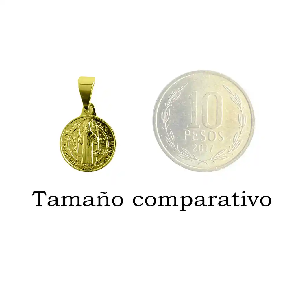Luce nuestro colgante medalla de San Benito de 12mm, Enchapado en Oro 18K. Hipoalergénico y libre de níquel, ideal para llevar contigo un símbolo de fe y estilo. ¡Hazlo tuyo! Medidas: Diámetro medalla 12mm. Largo medalla más valier 20mm. Peso 1 gr.