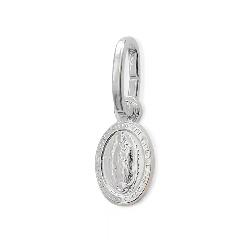 Lleva siempre contigo la protección y el amor de la Virgen de Guadalupe con este hermoso colgante de medalla de 8x6mm, elaborado en Plata Fina 925. Su diseño detallado con un delicado borde realza la imagen sagrada, convirtiéndolo en un símbolo de fe y devoción. Plata Fina 925 de alta calidad. Medidas: Largo total colgante incluyendo la argolla 16mm. Tamaño medalla 8x6mm. Peso 0,5 g