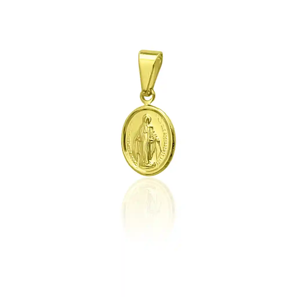 Lleva contigo el poder y la protección con el Colgante Medalla Virgen de los Rayos en forma ovalada, Enchapado en Oro 18K. Hipoalergénico y libre de níquel, es el accesorio ideal para combinar fe y estilo con elegancia. Medidas: Largo total colgante incluyendo el valier 20mm. Tamaño medalla 11x9mm. Peso 0,7 gr.