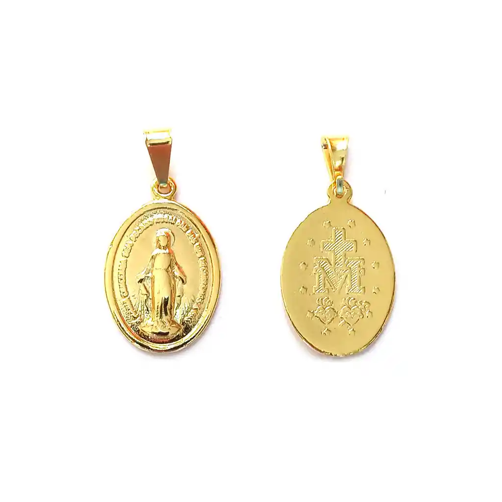 Ideal para darle un toque sutil, con personalidad y estilo a tus collares. Colgante medalla Virgen de los Rayos Enchapado en Oro 18K. Tiene una aleación de metales, libre de níquel. El material es hipoalergénico. Calidad garantizada. Sus medidas son 27mm Largo Total incluyendo el valier y 14mm de Ancho.