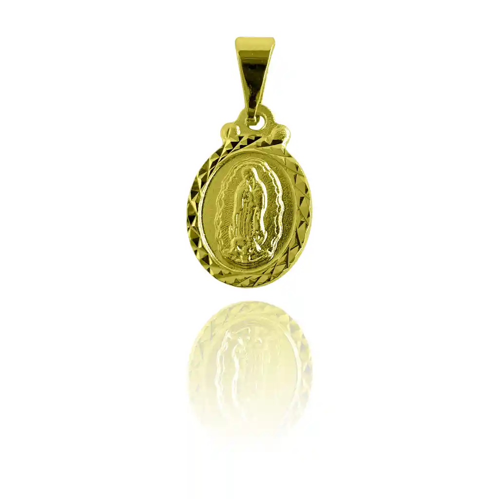 Luce nuestro colgante medalla de la Virgen de Guadalupe, ovalado de 11mm con borde, Enchapado en Oro 18K. Hipoalergénico y libre de níquel, un símbolo de devoción y estilo. ¡Hazlo tuyo! Medidas: Tamaño 13mm de largo y 11mm de ancho. Largo medalla más valier 21mm. Peso 1,1 gr.