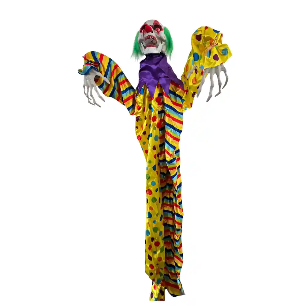 Dale un toque realmente aterrador a tu decoración con este colgante de payaso de Halloween de 1,5 metros. Con efectos de luz y sonido, es el complemento perfecto para sorprender (¡y asustar!) a tus invitados. Diseño terrorÃfico y detalladoEl payaso cuenta con rostro espeluznante, ropa desgarrada y acabados que logran un efecto escalofriante ideal para ambientar tu casa embrujada. Con luz y sonido integradosActiva sus efectos para lograr una atmósfera aún más aterradora: luces parpadeantes y sonidos espeluznantes que harán temblar a todos. Beneficios Tamaño impactante: 1,5 metros Efectos de luz y sonido incluidos Perfecto para interiores y exteriores techados Ideal para casas embrujadas, fiestas de Halloween y vitrinas Detalles técnicosMedidas: 1,5 m de altoCantidad: 1 unidadMaterial: Tela y plástico resistenteEfectos: Luz y sonido integradosUso: Decoración colgante de Halloween Crea una atmósfera terrorÃfica con este colgante de payaso y sorprende a todos en tu Halloween. 🤡👻 ¡PÃdelo ahora y lleva el miedo a tu fiesta! 🎃