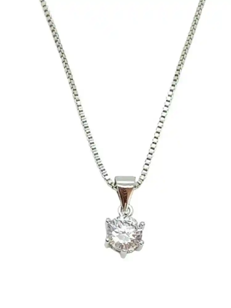 Resalta tu brillo personal con nuestra exquisita Cadena Colgante con Punto de Luz de Plata, acompañada de una delicada Cadena Veneciana y una zirconia brillante. Esta joya es un símbolo de elegancia y sofisticación que añadirá un toque de destello a tu estilo diario. Llévala para destacar en cualquier ocasión y descubre la belleza atemporal de la plata en El Baúl de Juma. Hermoso y elegante colgante con tejido veneciano y dije, elaborados en plata fina ley S925. Dije con circón cubico "AAA". Material: Plata fina ley S925 Longitud disponibles: 46 cm Piedra: Zirconia Cúbica 6mm Peso aprox: 3 g (Se envía con bella caja de regalo)
