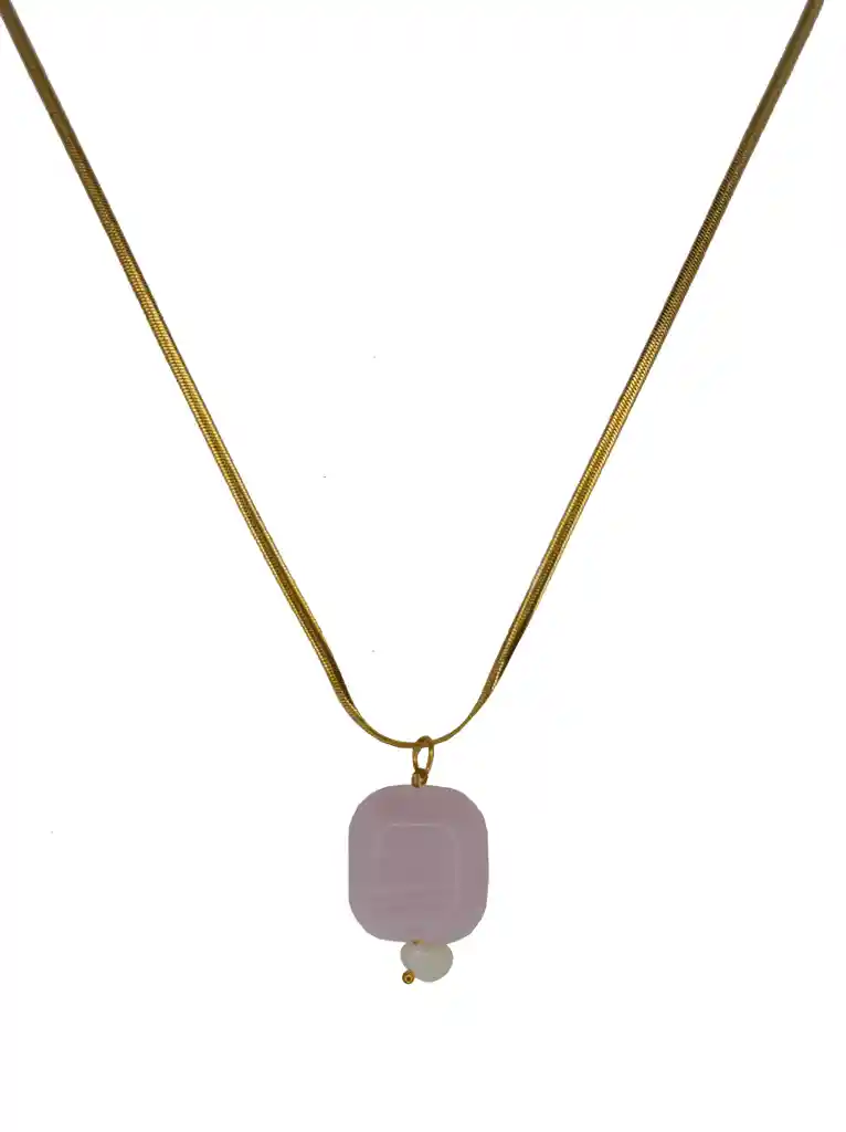 cadena acero 45 cm vidrio rosado perla de río Evitar el contacto con perfumes, cremas o agua