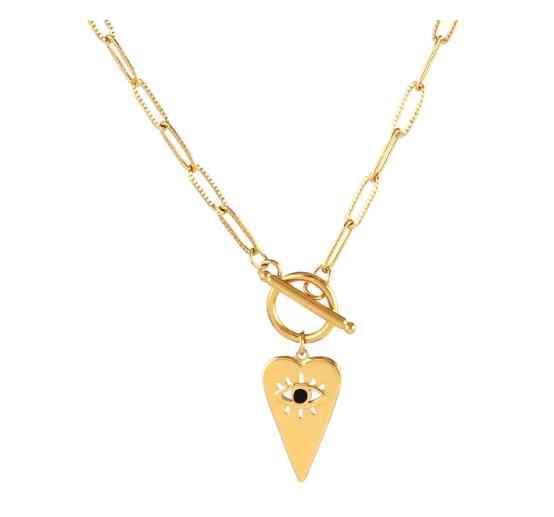 El COLLAR BIJOUX OJO EN CORAZON está hecho con acero quirúrgico de alta calidad, lo que lo hace resistente y duradero. Con su adorable diseño de ojo en forma de corazón, este collar es el accesorio perfecto para añadir un toque de estilo y protección a cualquier atuendo. Un regalo ideal para ti o para alguien especial.Medidas: Largo 44 cm.