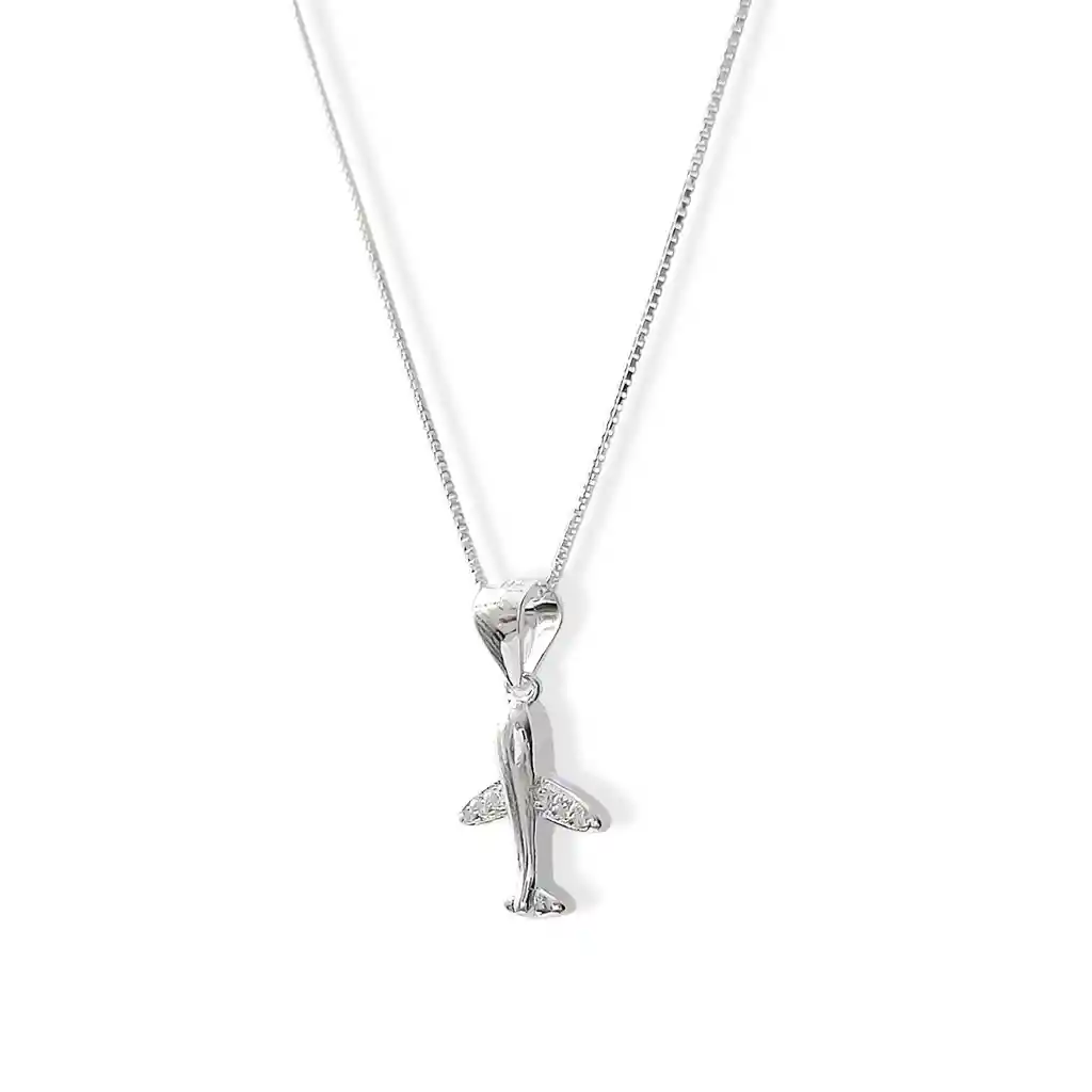 Un símbolo de libertad y aventura en una joya elegante. Este collar con diseño de avión, elaborado en Plata Fina 925, cuenta con brillantes circones blancos en las alas que lo hacen único y especial. Plata Fina 925 de alta calidad. Circón blanco para un brillo sutil y sofisticado. Diseño ideal para viajeros y soñadores. Medidas: Largo total collar 40cm más 5cm de cadena de alargue para ajustar a la medida. Largo total colgante incluyendo el valier 21mm. Tamaño Avión 13x12mm. Peso 2,9 gr.