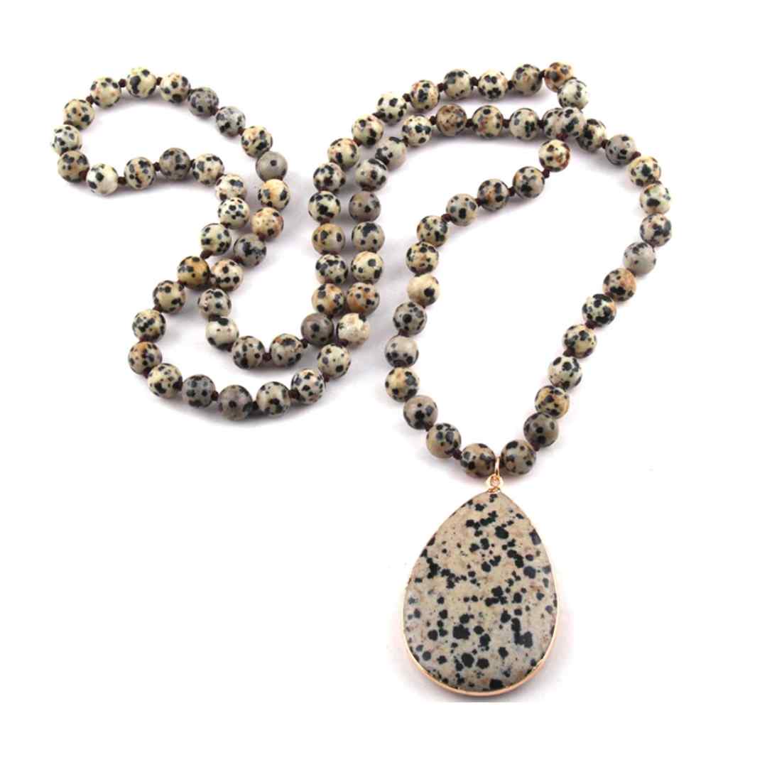 Este collar elegante presenta hermosas piedras jaspeadas que se han pulido a mano para garantizar su calidad. Las piedras están engarzadas en un collar que presenta un diseño único y delicado inspirado en la majestuosidad del tigre. Añade un toque de lujo con este collar y conecta con la fuerza y la belleza de la naturaleza.Material; Piedra semipreciosa