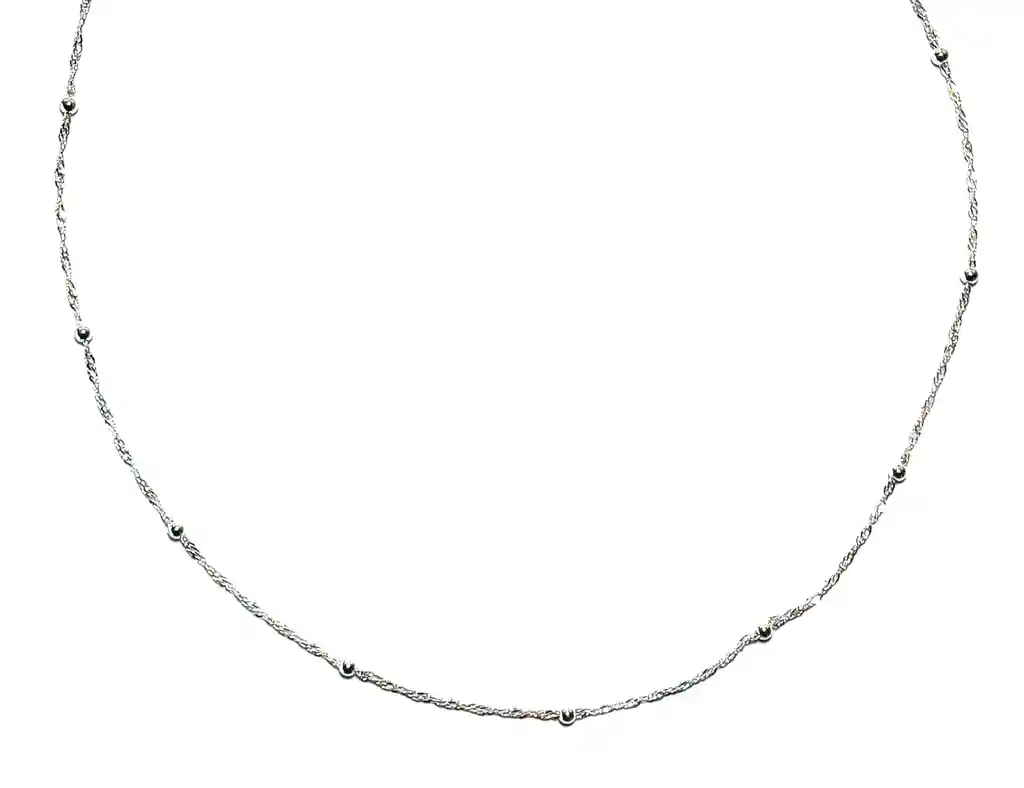 Un collar brinda a toda mujer un toque de feminidad. Collar bolitas cadena turbillón fino, fabricado en plata fina ley 925, sólida. Su calidad es garantizada y libre de níquel. Sus medidas son 50cm de largo en total del collar. Tiene un peso de 2,3 gr.