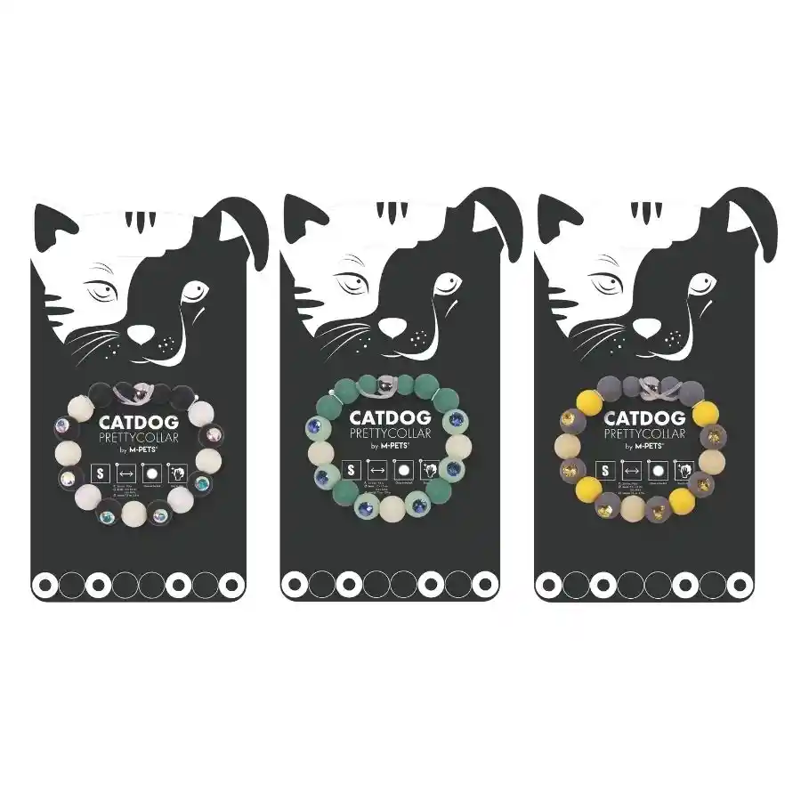 Elevar el estilo de su mascota con CATDOG PrettyCollars por M-PETS . Hecho con perlas de silicona ultrasuaves, nuestros collares son suaves con el pelaje de su mascota y piel, asegurando el máximo confort. Los materiales de alta calidad son duraderos y resistentes al agua, suciedad y olores, asegurando que el collar de su mascota se mantenga elegante durante años. Cada PrettyCollar cuenta con un robusto cierre de hebilla magnética, cuentas que brillan en la oscuridad para una mayor visibilidad y piedras preciosas para un toque extra de glamour. Hecho con amor y atención al detalle. Regálale a tu mascota el accesorio de moda definitivo de y verás cómo brilla a cada paso. Talla Cuello (cm) Peso (kg) S Hasta 23 cm Hasta 4 kg M Hasta 27 cm Hasta 15.9 kg L Hasta 30 cm Hasta 6.8 kg XL Hasta 35 cm Hasta 10 kg