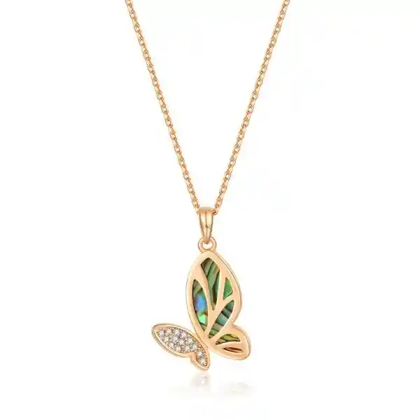 Collar hecho con Cristales Austriacos. Bañado en oro rosado. Tamaño dije: 2,3 cm. Largo cadena: 40 cm más 5 cm de extensión. Libre de níquel y plomo. Incluye elegante caja. Metal base: Bronce.
