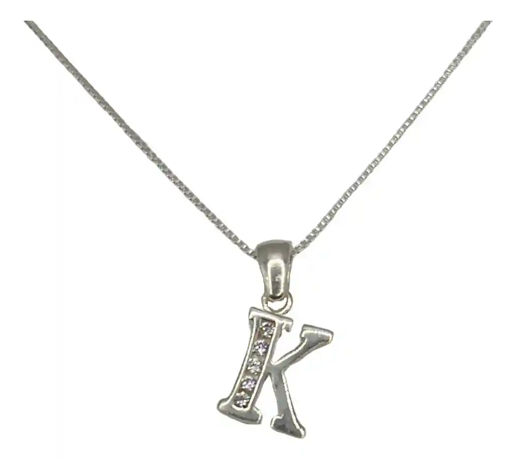 LOVELY JOYAS CL Collar letra K circones cadena 45 cm Plata Ley 925 Tienda online plata fina de Ley 925 y 950. En Lovely Joyas Cl nos comprometemos a entregarte productos de la mas alta calidad, garantizada. Consulta cualquier duda referente a las características y dimensiones del producto. Atendemos en forma personalizada cada venta, para asegurar la satisfacción del cliente.