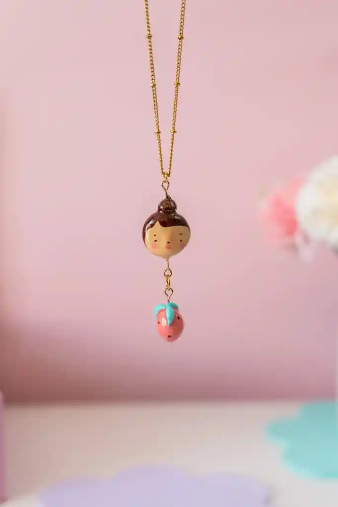 Collar Carita Cada una de estas caritas es única, pequeñas hechas a mano, estas caritas no son solo collares, son amuletos de dulzura, recuerdos de infancia y guiños a la magia de lo simple. • Para llevar un pedacito de ternura cerca del corazón. • Un regalo especial para alguien que ama lo delicado y hecho con amor. • Para recordarte que siempre hay un poco de fantasía en los detalles. Medida colgante: 6cm aprox, porcelana fría con terminación en resina, resistente. Cadena 45cm de acero inoxidable.
