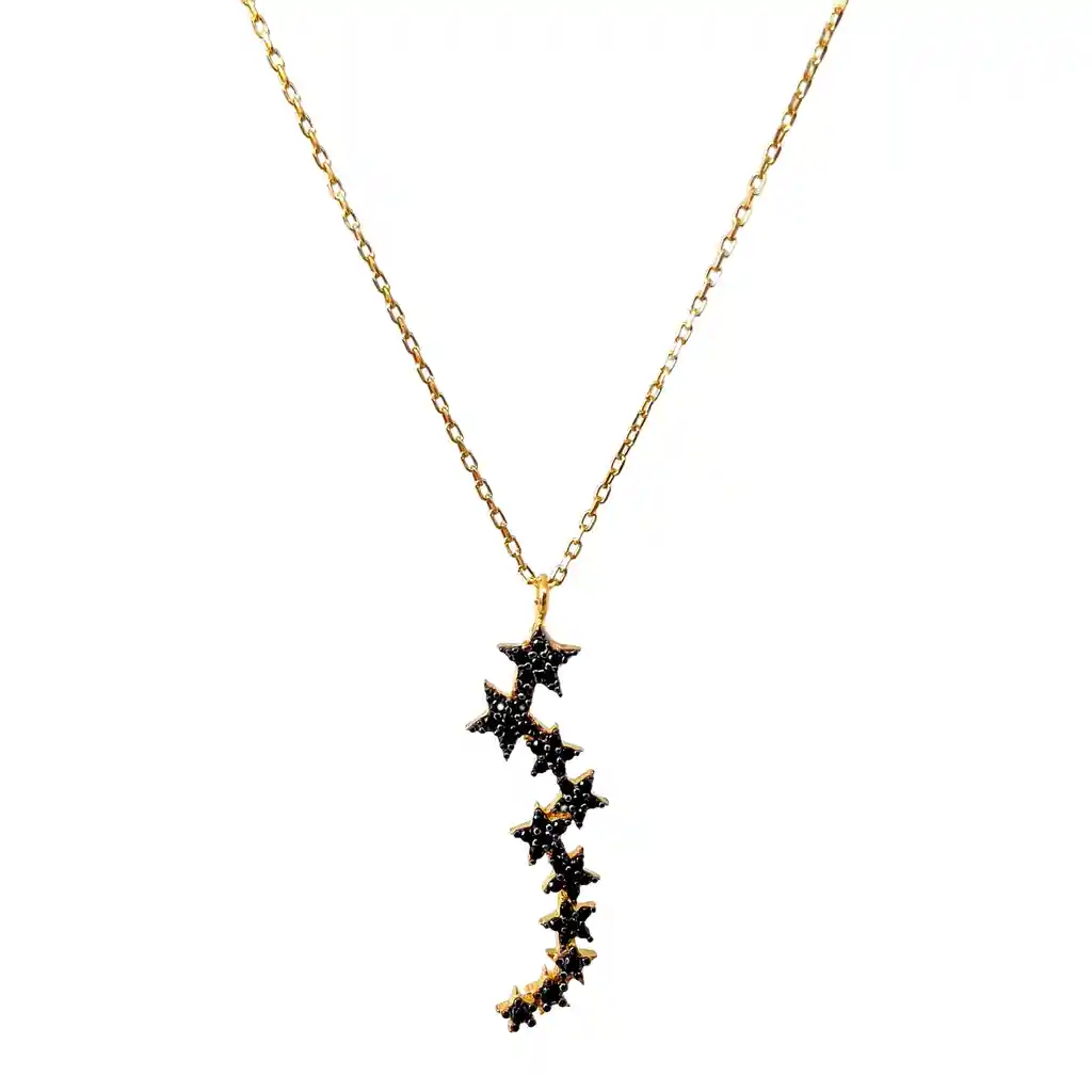 Collar de plata 925 con bano de oro 18k y piedra onix. Coleccion Oriente Chic.