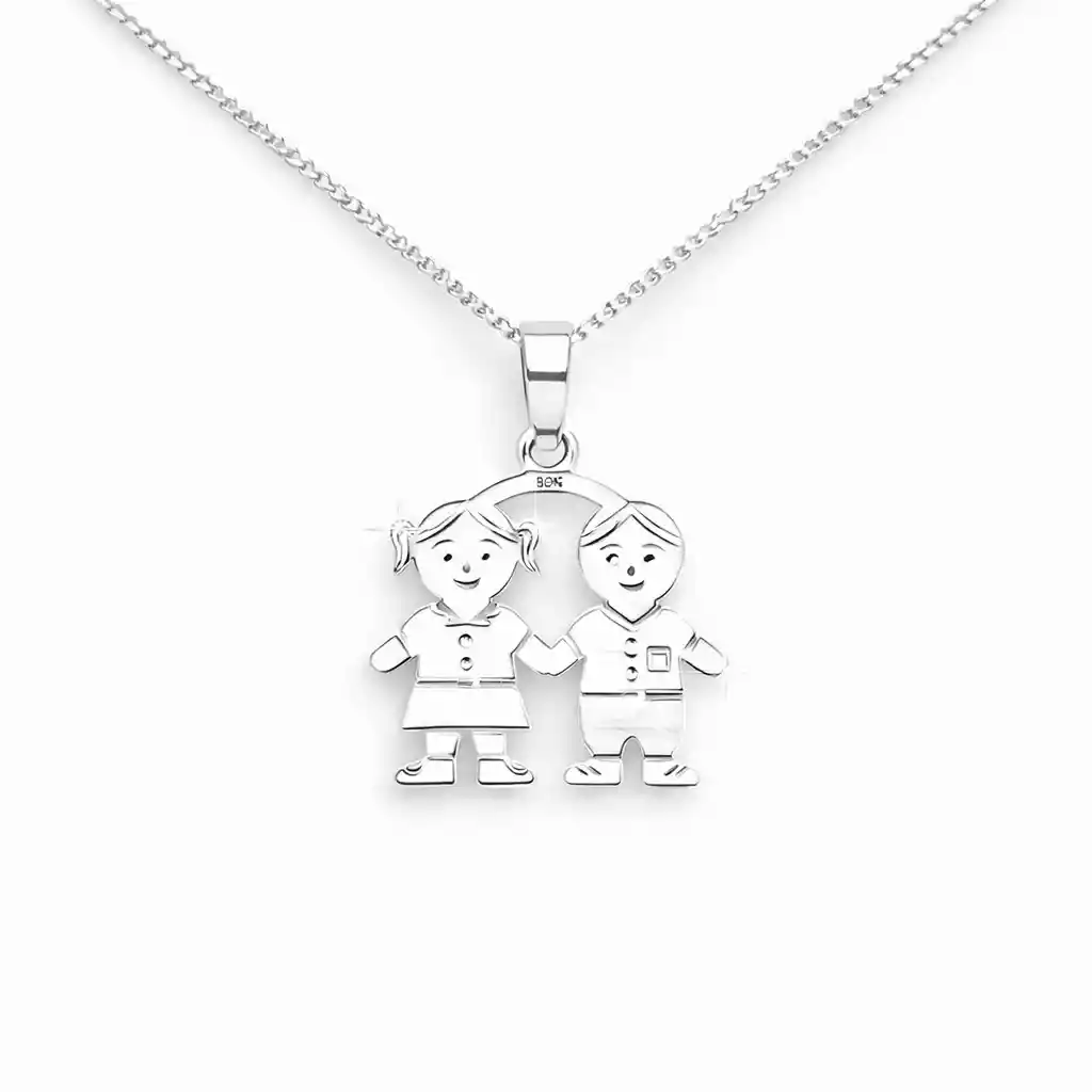 Lleva contigo el amor más puro con este tierno collar colgante Niña y Niño en Plata Ley 925, un diseño que simboliza protección, unión familiar y cariño infinito. Su estilo delicado y elegante lo convierte en la joya perfecta para mamás, abuelas o cualquier persona que desee mantener cerca a quienes ama. Ideal como regalo significativo para ocasiones especiales. Especificaciones: - Material: Plata ley 925 -Medida cadena: 45cm - Medida colgante: Peso: 0.9 Gr. Alto: 15 mm. Ancho: 15 mm. - Presentación: incluye caja elegante, ideal para regalar. - Estilo: Elegante. Celebra el amor familiar. ¡Adquiérelo ahora y lleva siempre contigo a tus pequeños!