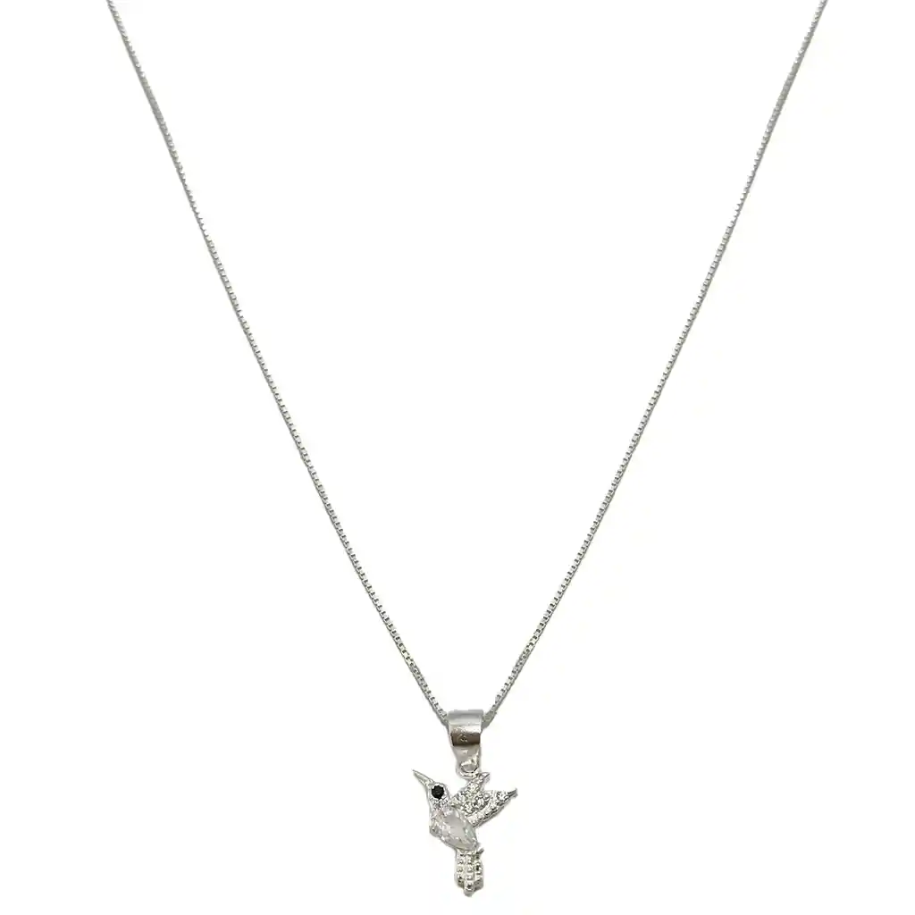 Sumérgete en la exquisita elegancia de nuestro Collar Colibrí, adornado con circones blancos y elaborado con fina Plata 925. Cada detalle de este delicado colibrí resalta la gracia y la belleza, mientras que los circones blancos añaden un toque de brillo sutil. Sus medidas son 45cm de largo en total de la cadena. El colgante es de 18mm de largo en total incluyendo el valier y 11mm de ancho. Tiene un peso de 2,5 gr.