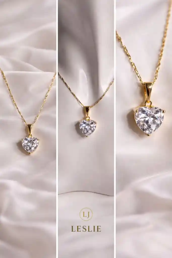 Collar con hermoso corazón de cristal laminado en oro de 14k mide 45cm.